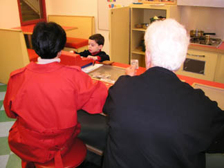 Carolyn in the pretend restaurant